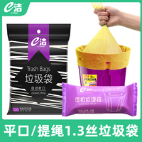 e洁家用垃圾袋背心式平口/自动收口提绳加厚黑色大容量一次塑料袋展鸿家居专营店